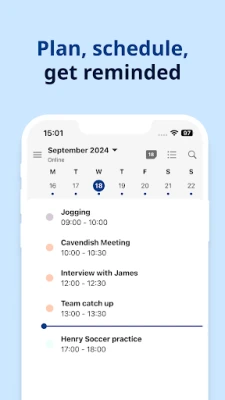 • Multiple calendar views: Switch in one tap between agenda, daily, weekly, and monthly view.