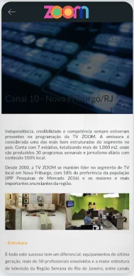 Com 24 horas diárias de transmissão de conteúdo 100% Nova Friburgo, o aplicativo da TV Zoom é completo.