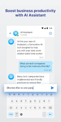 Your desktop chat is synchronized in real-time with your mobile device, so you can stay connected and continue conversations from wherever. Now, with UNIVERGE BLUE CONNECT AI Assistant, you can effortlessly access information and simplify your daily tasks using the power of generative AI technology.