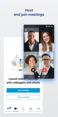 Extend your business phone number and extension to your mobile phone, so you can place and receive calls on the go or even transfer calls from your desktop phone to your mobile device – seamlessly, without interruption. Join a scheduled call or launch an ad-hoc video conference meeting from wherever.
