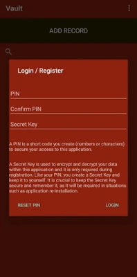 Please note that the Secret Key is an important component of the Password Vault app as it adds an additional layer of security to your stored records. The Secret Key acts as a master password that encrypts and decrypts your passwords.