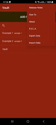 The Password Vault app allows users to securely store and manage their passwords and other sensitive information.
