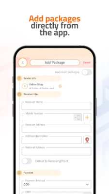 يتيح التطبيق لزبائن الشركة إدارة ومتابعة الطرود الخاصة بهم من لحظة اضافتها على النظام ولغاية تسليمها، بالإضافة لإدارة ومتابعة التحصيلات المالية وحالاتها لتسهيل متابعتها مع الشركة.