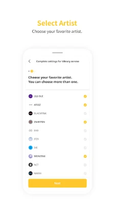 (G)I-DLE, asepa, ASTRO, ATEEZ, BLACKPINK, BOYNEXTDOOR, CLASS:y, CRAVITY, DREAMCATCHER, ENHYPEN, EVERGLOW, EXO, Ferry Blue, fromis_9, Golden Child, GOT7, ITZY, IU, IVE, IZ*ONE, JO YURI, Kep1er, LE SSERAFIM, LOONA, MAMAMOO, MONSTA X, NCT, NewJeans, NMIXX, OH MY GIRL, Red Velvet, RIIZE, Seventeen, STAYC, Stray Kids, TEMPEST, THE BOYZ, TREASURE, TRENDZ, tripleS, TWICE, TXT, Wanna One, YENA, ZEROBASEONE