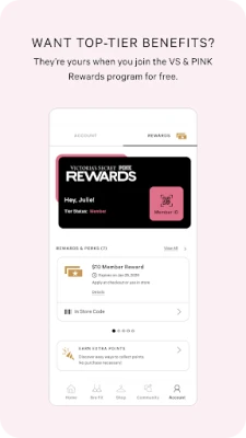 Join VS & PINK Rewards to earn points with every purchase, which turn into treats like Free Shipping and $$ Off your next order. Plus, you’ll have access to our exclusive Community—a space to create, connect, and get inspired.