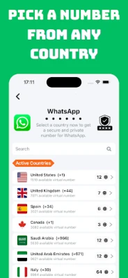 Select the country for your temporary virtual number.