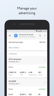 VK Admin is an app for community managers. This app allows you to communicate with clients and followers on behalf of your VK communities, manage your groups and track statistics from your mobile phone.