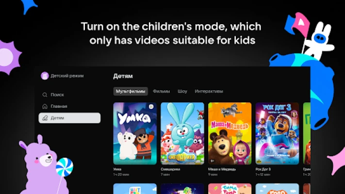 Top shows and bloggers, fitness and music videos, educational content and news, movies and TV series, online TV channels, live broadcasts and sports events, cartoons for kids, and much more in up to 4K resolution. Start watching your favorite shows on the big screen, and continue in the VK Video app. Log in and watch what you like without a subscription!