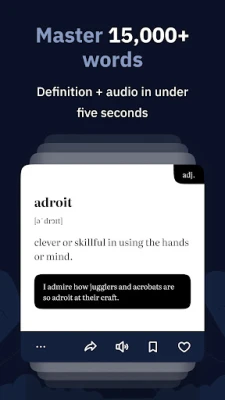 Vocab helps you learn new English words daily and master complex and rare English words that aren't part of standard language learning apps. If you're looking to expand your vocabulary, improve your language skills, and make your speech more sophisticated, Vocab is the perfect choice.