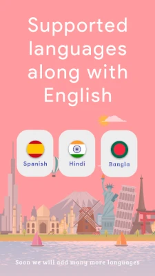 Isn’t it easy to learn an English word when you know what that word means in your native language? We already have added translation to 3 major languages, Bangla, Spanish and Hindi with a help of native speakers.