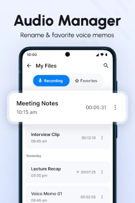 Record high-quality audio anytime, anywhere with Voice Recorder – the most powerful, easy-to-use voice recording app. Whether you're recording meetings, interviews, lectures, or personal voice memos, this lightweight and reliable audio recorder app has you covered.