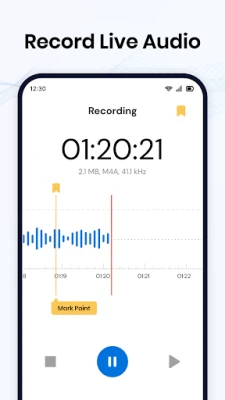 • Real-Time Waveform Display: Monitor audio levels in real-time with a waveform display during recording.