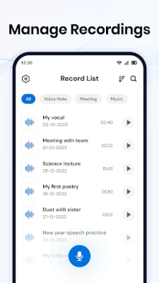 • Customizable Categories: Organize your recordings by choosing from categories like Voice Notes, Meetings, or Music. You can even create your own custom categories to stay organized.