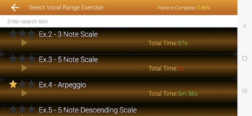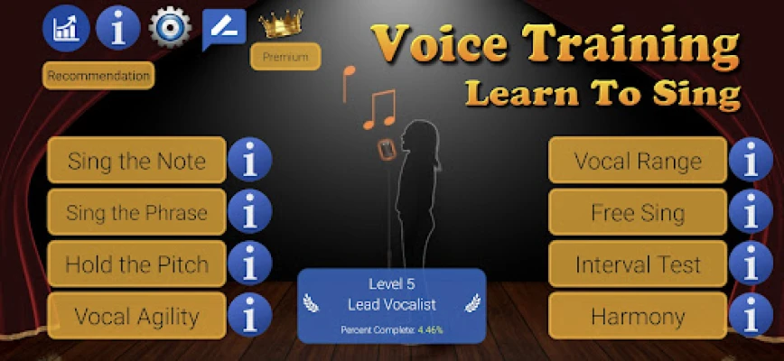 Series of levels and exercises to increase range and perfection. The pitch analyses shows whether singers can perfectly sing intervals.