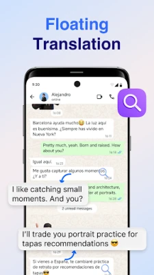 - Floating Translate: Use the floating ball to translate text directly on your screen — even outside the app — simply by dragging it over the content you need to translate.