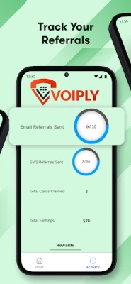 Voiply residential customers have access to an amazing reward program. Use the app to send emails and SMS messages to contacts. By referring friends and family to Voiply customers can earn up to $70 in gift cards.