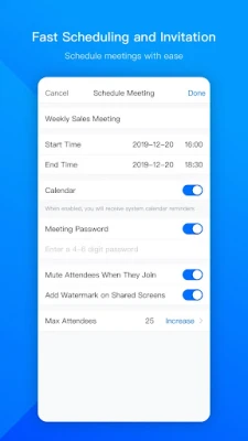 - Easily join, start, and schedule a meeting in just a few clicks across devices