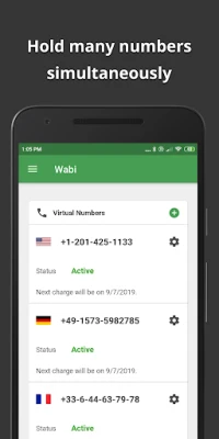 • Wabi provides numbers from 30+ countries, but if there's no local phone number available for your country, you may still get a US number or any other number and use it to activate a WhatsApp account!