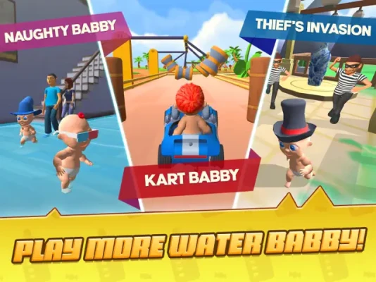 Welcome to Water Babby: Find the Daddy game! Featuring water baby and a clueless father attempting to prevent baby from flooding the household.