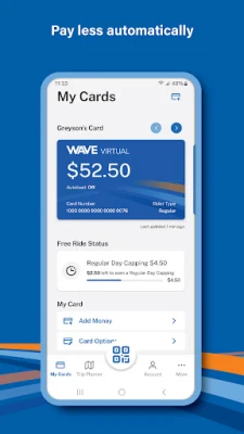 To get started, download Wave by OCTA to register your account. Create a virtual Wave card or link your physical card. Add funds and you’re ready to ride. It’s that simple.