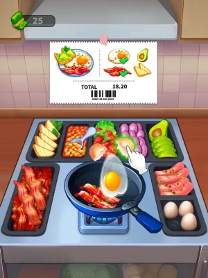 PLAN AND IMPROVE Save and spend coins wisely. Upgrade tools, discover fresh ingredients, and enhance your kitchen for a more seamless experience. Smart planning is the key to success!