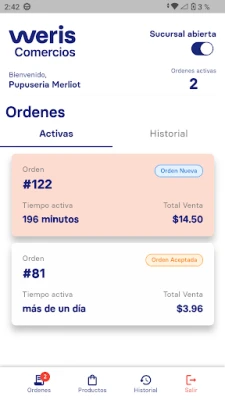 Aplicación diseñada para POS de los comercio que operan dentro de la plataforma WERIS.