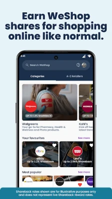 Earn ShareBack on the items you’re already buying from retailers you already shop at including eBay, Walmart, Walgreens, Kohl’s, Best Buy, Levi’s, Booking.com, Expedia, Sam’s Club, and many more.