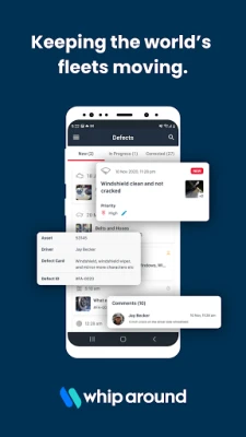 Conduct fleet inspections, manage work orders, and monitor fleet health from anywhere: Whip Around’s free app puts our powerful fleet maintenance software in the hands of drivers, mechanics, and fleet managers. The Whip Around App allows your fleet staff to collaborate on fleet management and maintenance tasks while they’re on the go: so your fleet stays running smoothly—everywhere.
