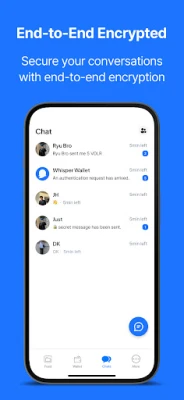 Keep Privacy All messages are encrypted in Whisper. Every message sent will be automatically destructed upon confirmation of receipt.