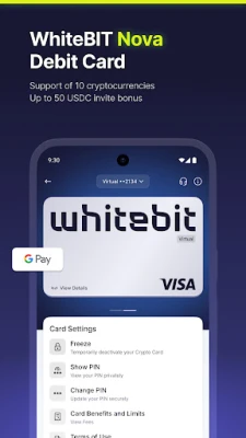 - WhiteBIT Nova is a debit card that allows you to spend cryptocurrency on everyday purchases with up to 10% of real cashback in BTC or WBT, 0% fee for opening and closing the card, Apple Pay and Google Pay integration, ATM withdrawals, invite bonus, and more. Available in both digital and physical formats.