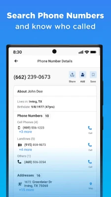 Get accurate contact details and background info with Whitepages Find People, the trusted phone book and reverse lookup app! Use people search to find lost contacts, phone number lookup to identify unknown callers, or free address lookup to find property owners. With Whitepages Find People, you can perform people searches to get phone numbers, addresses, emails, background reports and more. You can also effortlessly sync and clean your contacts to make sure they are always up-to-date. Access info fast with Whitepages Find People – your go-to directory for true people search!