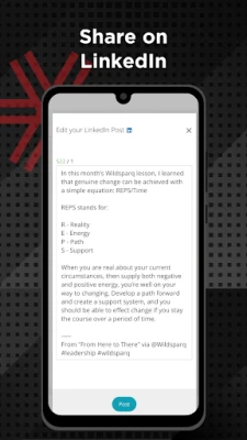 With a robust mobile experience, it’s now much easier to finish your lesson, engage with your team, and consistently grow as a leader each month. You can use the Wildsparq app to: