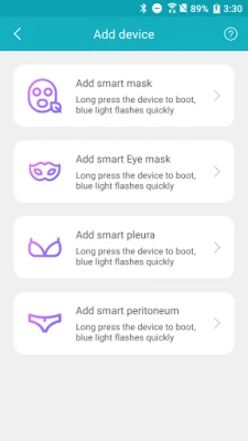 * WISCHA薇采星超智能護膚系統中共有眼、面、胸、腹四部位,皆可使用本APP控制,每部位有四功能供選擇,每次體驗為12分鐘。