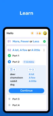 A learning process designed for you that is both easy and guided: You’ll feel like you’re learning more and more English every day. Every sentence, exercise, review, and reading has been carefully selected for you.