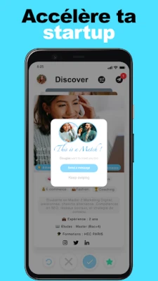 Inscris-toi, précise tes objectifs (trouver une mission freelance, un mentor, un associé, un stage, une alternance, une nouvelle carrière…) et indique tes centres d’intérêts (ex : communication, design, tech, marketing digital, SEO…). Chaque jour, l’algorithme te propose les meilleurs profils adaptés à ta vibe professionnelle.