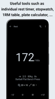 • In-Depth Analytics: Analyze your progress with detailed statistics, charts, and reports (e.g., 1RM, training volume, calories, rest times).
