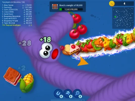 There are also different bonuses in the arena that improve your worm’s stats. Use them wisely, and they will help you achieve your desired goals! Good luck, little worm!
