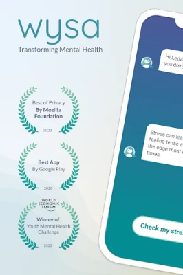 If you are dealing with stress, anxiety, low mood, or coping with low self-esteem, talking to Wysa can help you relax and get unstuck. Wysa helps you stay grounded through calming, evidence-based techniques that promote mental resilience. Your identity will remain anonymous and your conversations are privacy protected.