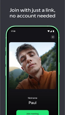Joining meetings is even easier. Just open the link and tap Continue. Your friends will be able to join the meeting, even if they don't have a Yandex account.