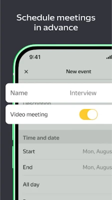 Creating meetings is easy! Just tap Create video meeting and send the link to your friends and colleagues. To create a meeting, you must have a Yandex account.