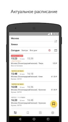 Key features: - suburban and regional train timetables for any day; - precise information on soonest departures, ticket prices and platform numbers; - access selected routes when offline; - automatic updating when RZD timetables change; - buy train tickets to and from Moscow airports.