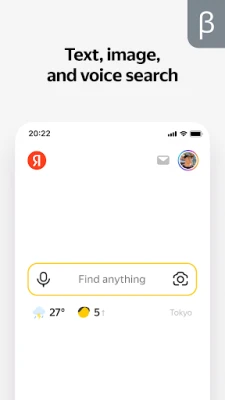 Quick search with smart hints and Alice, who will answer any question. Search in Yandex however you prefer: by typing your query in the search bar, by asking Alice out loud, or by taking photos with the Smart camera. The app can also tell you who's calling when it's an unknown number, help save on expensive purchases, explain complex problems, and perform everyday tasks.