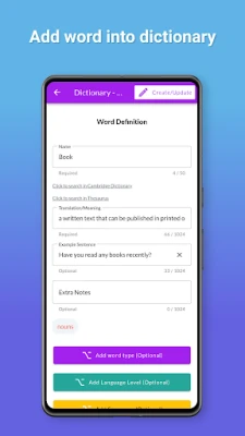 ► Create and Update Your Dictionaries: With this app, you can create your own dictionaries or vocabulary notebooks. Keep them up to date by adding new words whenever you encounter them.