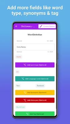 ► Tag Your Words: Categorize your words easily by adding tags. Tags act like labels, making it simple to find and group words with similar themes or meanings.