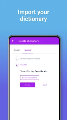 ► Creating a Dictionary: When you first open the app, you'll create a dictionary. Give it a name, and it's ready to use.
