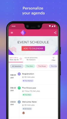 • View the entire event website and be informed of any updates and announcements • Ask questions to the speaker directly from your mobile device and participate in polls • Pick and choose sessions that interest you to create your own agenda for the event. Add sessions to your phone’s calendar to stay on top of your day. • Snap and upload photos to capture event memories • Get directions and navigate to the event venue without any hassles. Also avail special discounts on hotels if your Event Organizer has made arrangements