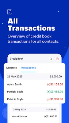 3) All Transactions A comprehensive overview of credit book transactions is available across all contacts.
