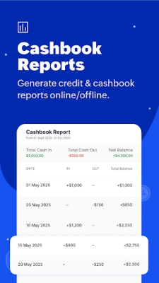 Generate detailed reports for credit book and cashbook transactions. Simplify your finances with Zoho Daybook, your free digital ledger app.