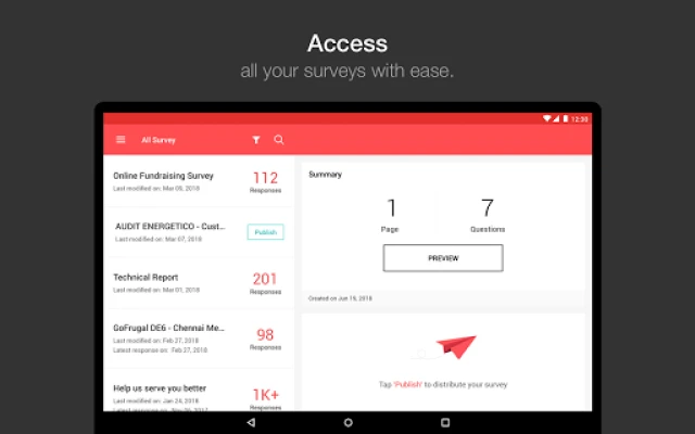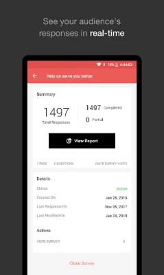 Forget your laptop, create your survey and collect responses from your smartphone and get instant reports — ON THE GO!