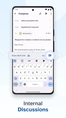 Conduct internal discussions - With Zoho TeamInbox, you do not have to switch to another application for collaborating. Chat with your teammates right from your inbox.